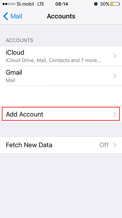 Zažene se vam orodje za dodajanje novih poštnih predalov. Za vzpostavitev novega predala izberite Add Account.